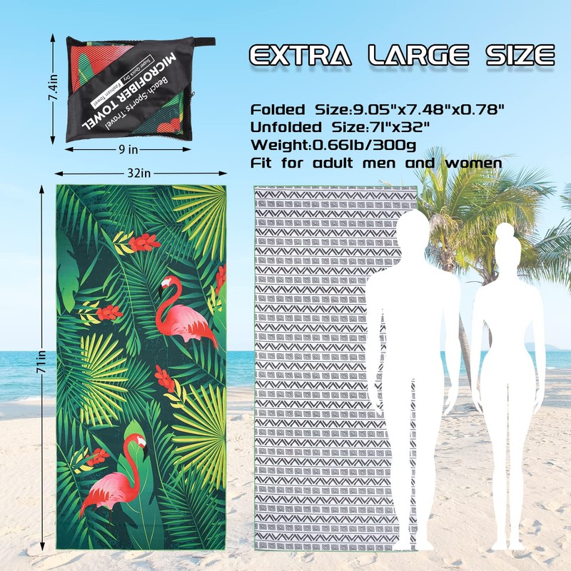 - EXTRA LARGE BEACH TOWEL : Our beach towels measure 71x32 inches/180x80cm when unfolded,9x7.5inchehes/23x19cm when fold. Bigger than a usual beach towel, it can cover your whole body or the sun lounger. Large beach towel is perfect for adult men and women. Wipe away any unwanted water or sweat with these absorbent microfiber towels for the body.