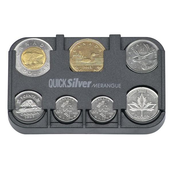 - Holds Canadian coins (toonies, loonies, quarters, dimes, nickels)