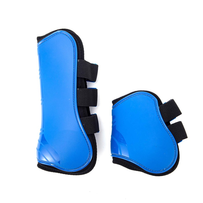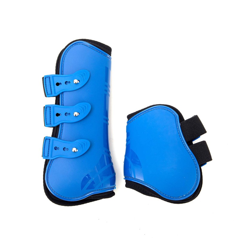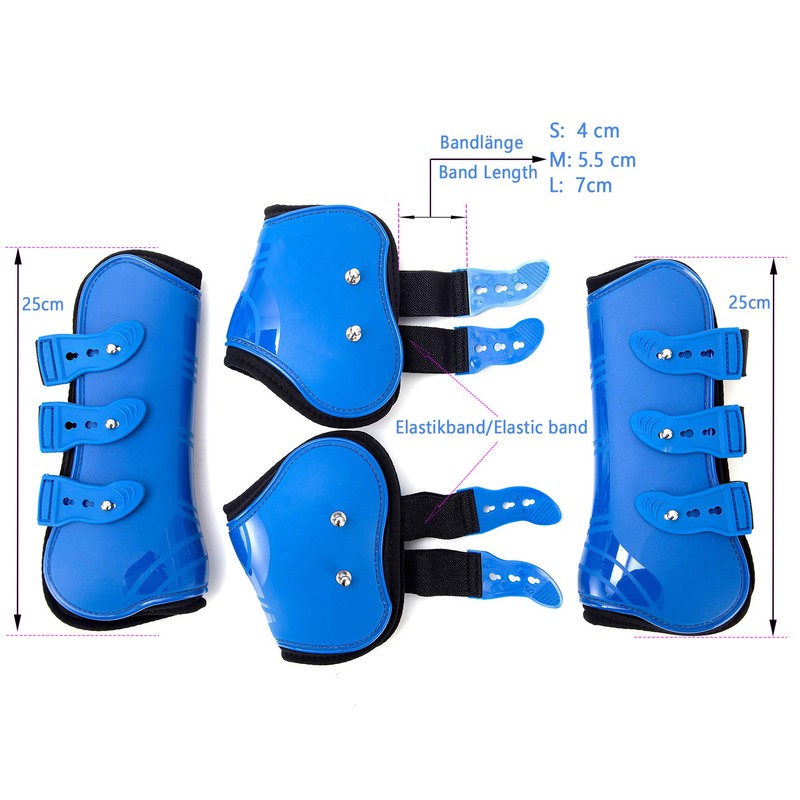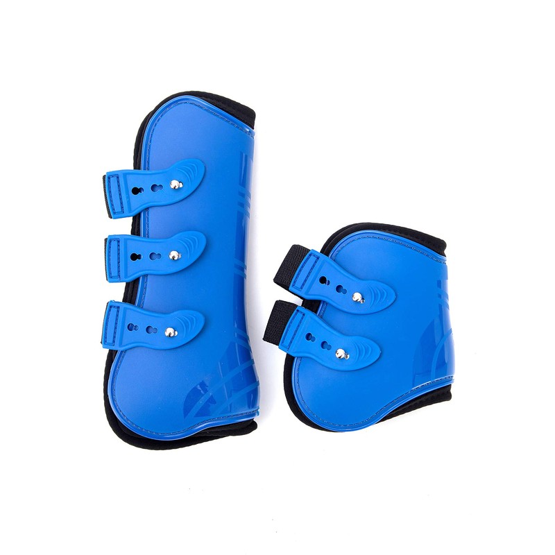 Merauno® Horse Gaiters Set of 4 Tendon Protectors Fetlock Horse Jumping Protection Front Rear Pair Robust Elastic PU Shell Neoprene Button Closure 2 Pairs for Men and Women (S(Pony), Blue)