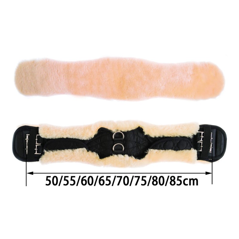 - Features: The handmade lamb wool girth is equipped with a real lamb wool cover on one side and on the other side with a robust and durable quilted fabric. Stainless steel D-rings and buckles provide durability. The wool height is 30 mm. The length is measured from buckle to buckle. Buckle attachments are not elastic and the lamb wool is removable and replaceable.