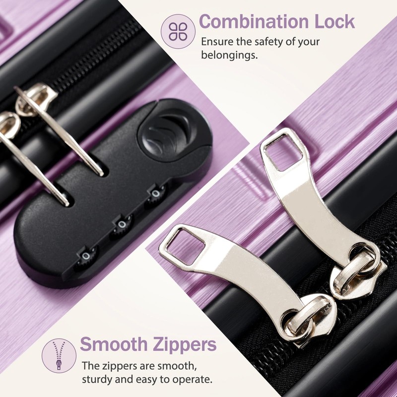 Merax Hardshell Luggage Sets ABS 3Pc Carry On Luggages With Spinner Wheels, Light Purple, 20/24/28 Inch
