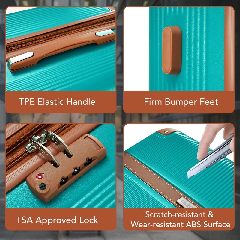 - 【High Quality Luggage sets】The lightweight and durable shell is made of high-quality PC+ABS material, with three-dimensional vertical stripes and corner protection design, which not only increases the appearance, but is also wear-resistant and scratch-resistant, extending the service life. Ergonomically designed soft rubber handles and thickened feet enhance the suitcase's practicality and convenience.