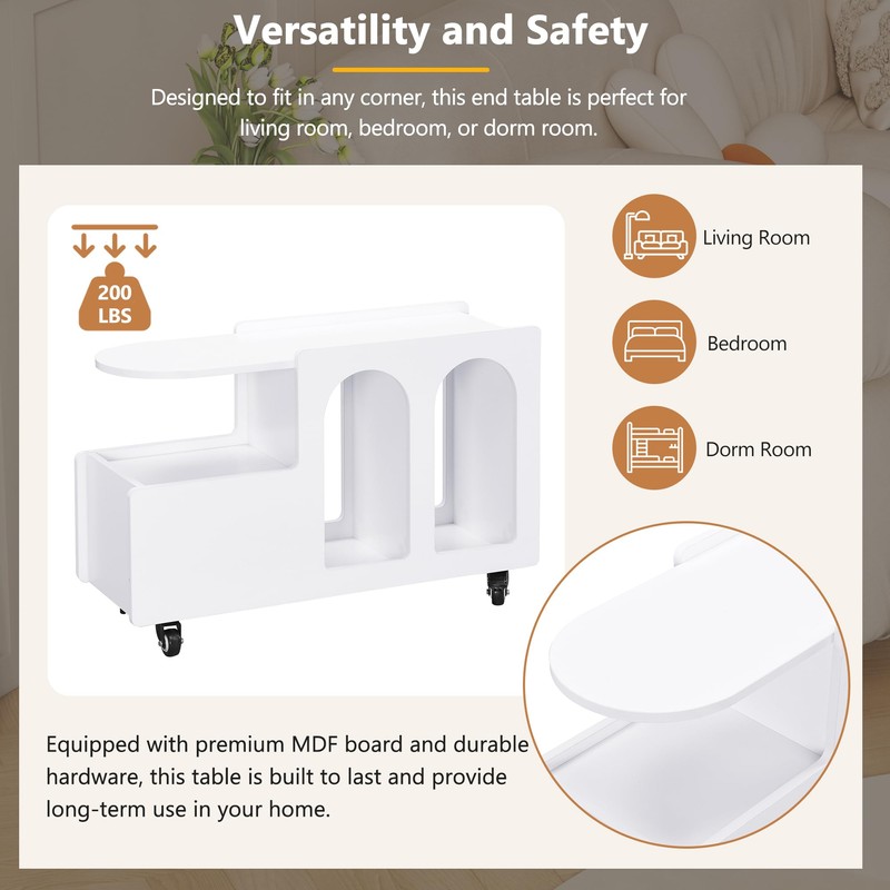 - 【Durable and Long-lasting】Crafted with premium MDF board and durable hardware, this mobile end table is built to last. It can withstand daily use and provide long-term functionality in your home. Its stability and sturdiness make it suitable for various decorative styles, ensuring versatility in your interior design.