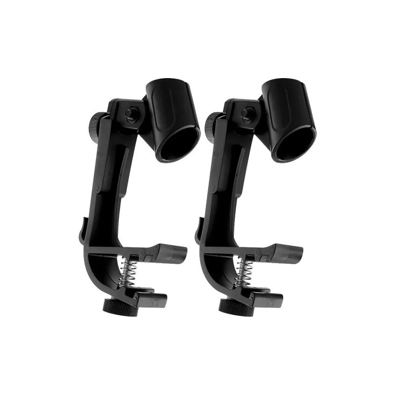 Soporte de micrófonos para instrumentos de batería y percusión con diámetro alrededor de entre 18 a 28 milímetros, hecho de plástico ABS, se puede sujetar a la mayoría de tambores estándar y ajustar el micrófono a la altura y al ángulo requerido.
