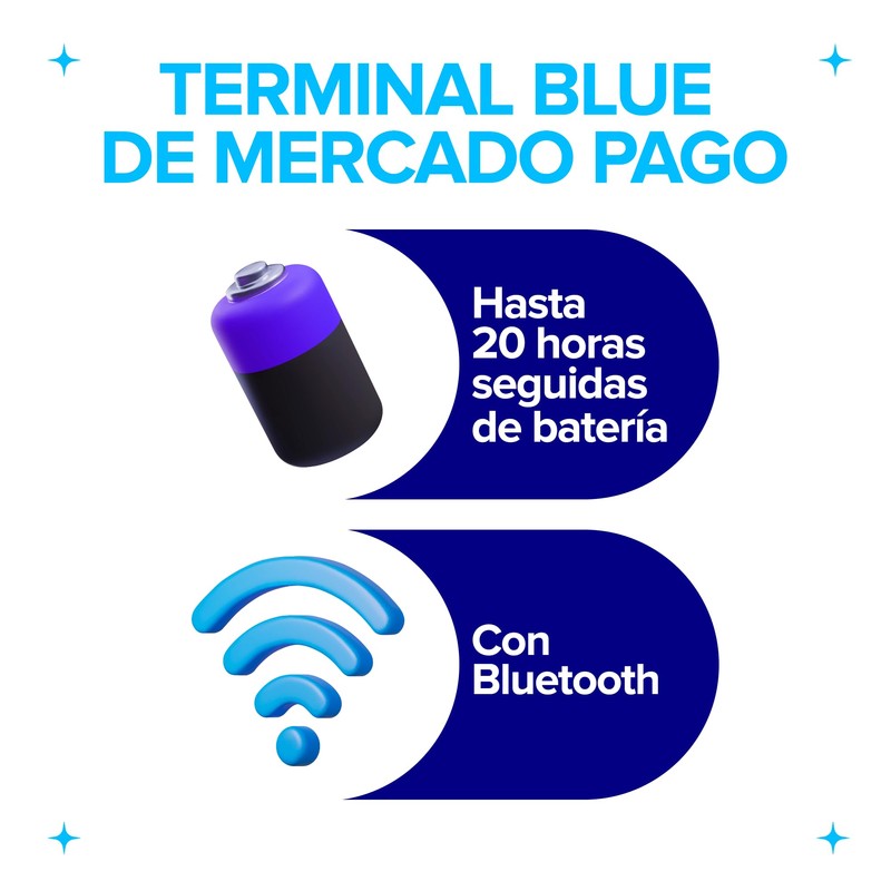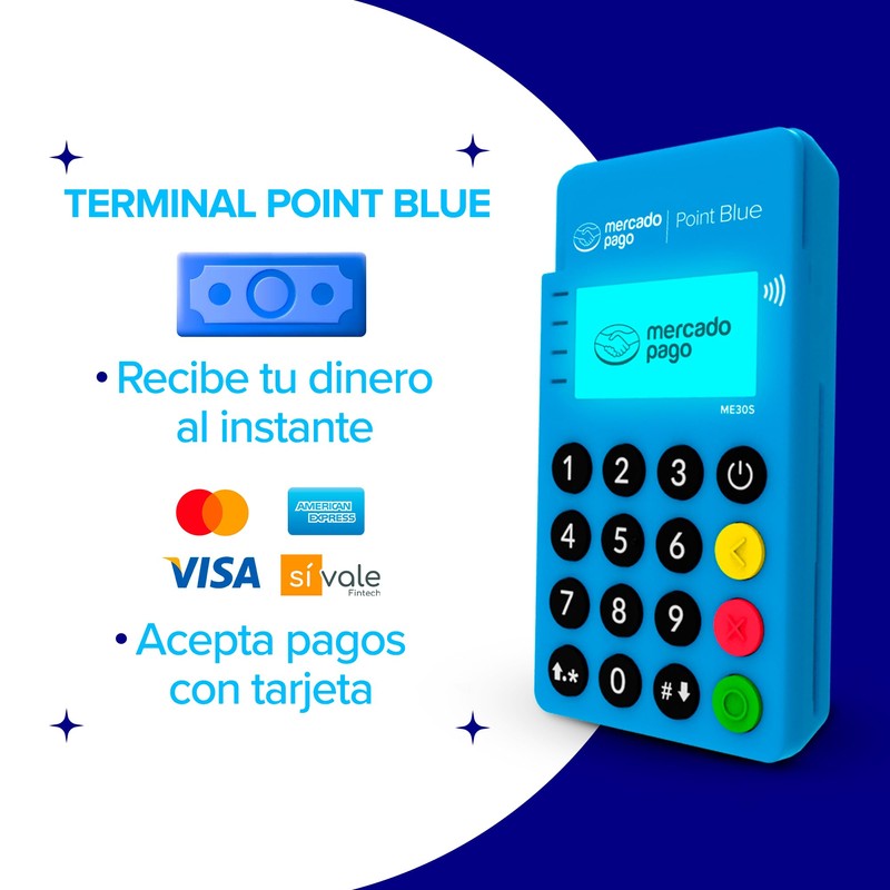 ¡Vende más y mejora la experiencia de compra de tus clientes! Point Blue cuenta con conexión Bluetooth y batería que dura hasta 20 hrs. ¡Realiza cobros fáciles, rápidos y seguros! Tus clientes tendrán la opción de pagar con todas las tarjetas, y recibir sus tickets de compra a través de SMS o correo electrónico, además podrán pagar hasta 24 meses sin intereses. Recibe el dinero de tus ventas al instante en tu cuenta de Mercado Pago, podrás disponer de tu dinero mediante transferencia bancaria, retiros de efectivo en Circulo K, o con tu tarjeta Debit Mastercard (incluida sin costo en tu kit). ¡Siéntete seguro! tu terminal cuenta con garantía por 12 meses.