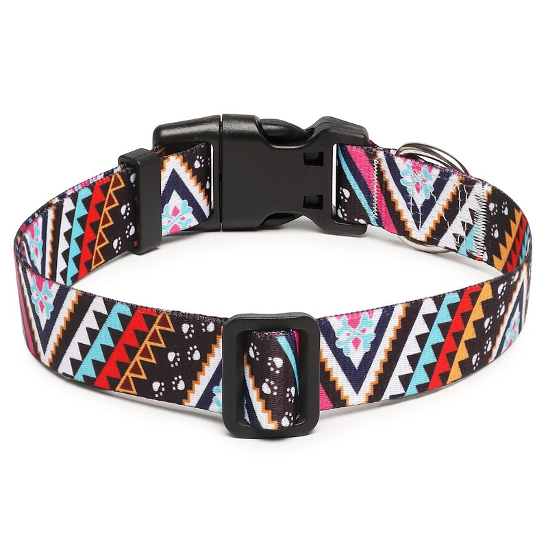 Mercano Adjustable Soft Nylon Dog Collar with Tribal Floral Ethnic Plant Patterns, Comfortable Breathable Lightweight Pet Collar for Small Medium Large Dogs and Cats.