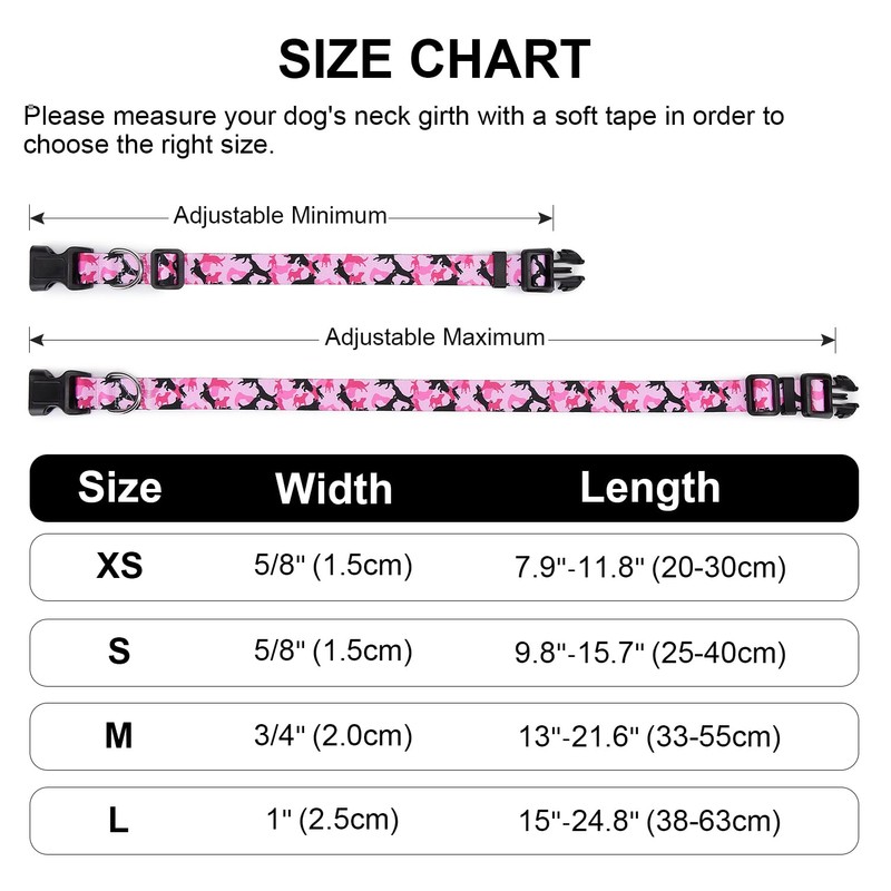 - Suitable size: Please measure your dog's neck circumference and read our size chart to choose the right size. Usually leave two fingers distance between collar and collar, this helps prevent your dog from chewing the collar.