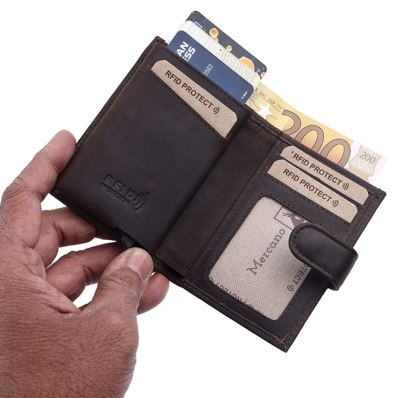 MERCANO Leather Wallet with RFID Protection, Wallet with Protected Card Slots, Made of High-Quality Leather, with Coin Compartment and Credit Card Protection, brown, Casual