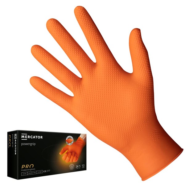 Mercator POWERGRIP Nitrile Gloves, Powder-free, Orange, Size: XL - 50 pieces