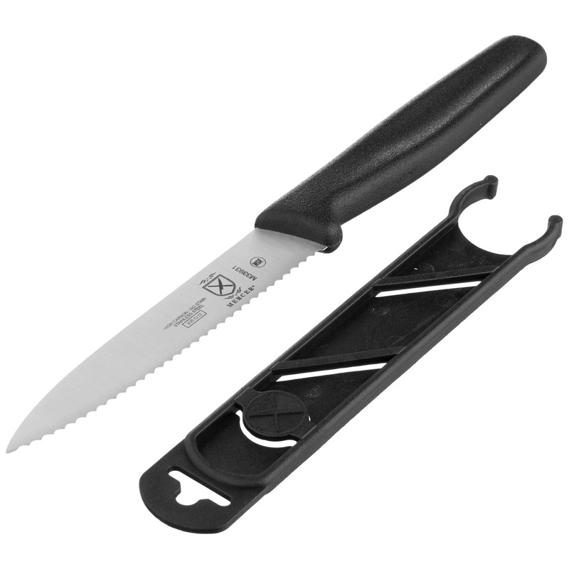 Mercer Culinary Mercer Pointed Tip Wavy Bar Knife, 4 Edge, Black M33931B, One Size, Multi