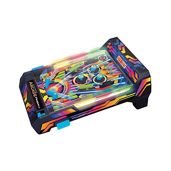 Enjoy the thrills of the arcade with the Electronic Arcade Pinball. Vibrating bumpers, Flashing LED lights, Electronic score counter all with Arcade sounds! Comes with 1 base unit , 6 steel balls and I sheet of stickers.