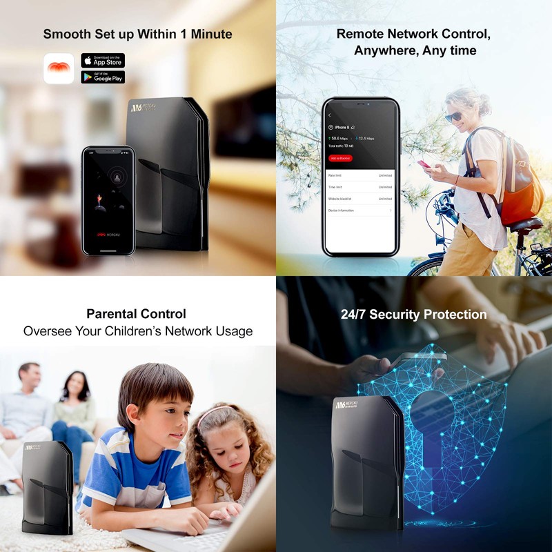 - PATENT WHEMS ANTENNA - The M6 router is equipped with Mercku's patented WHEMS antennas, which can provide faster wireless speed and better stability.
