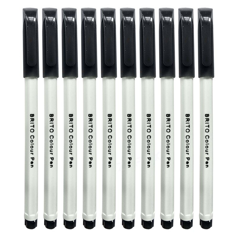 MERCURY Brito Felt Tip Colouring Pens, BLACK, Pack of 10, Fine Point, Ideal for Draw Colour Mark Sketch Write Draft, School Office Home Everyday Use