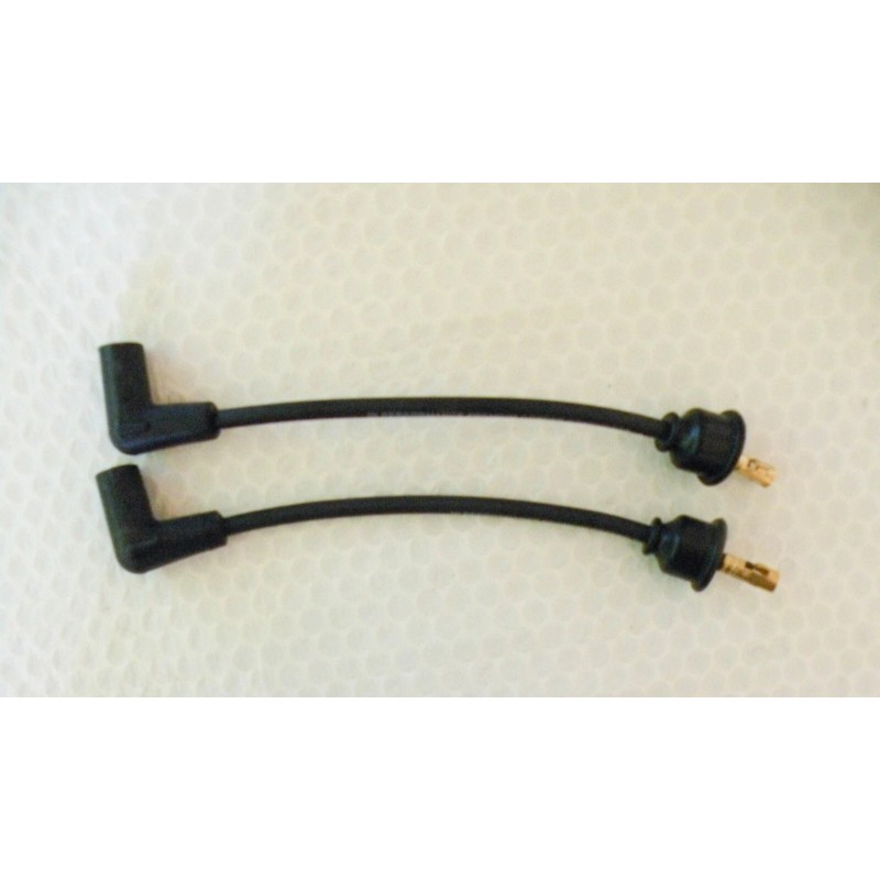 This set replaces 84-313715A2. 2-wire set made of 7mm tinned copper core wire. Spark plug ends have a crimped snap lock terminal, they are the best. The coil wire end is a brass push in terminal.