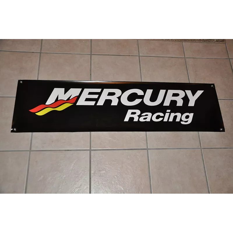Mercury Racing BANNER BIG 88" * 24" Race Boat W/2 Mercury Racing Stickers Decals