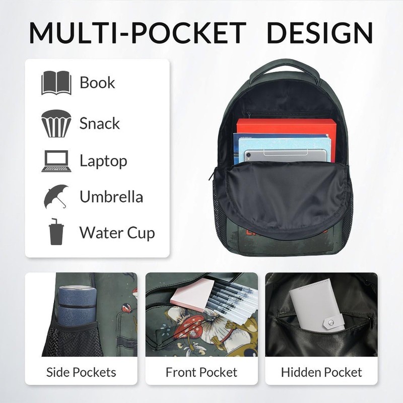 - Whimsical Think: This mushroom backpack comes with enchanting designs adorned with motifs that inspire joy and imagination, taking your child on a journey full of wonder and whimsy, igniting their imagination and inspiring a sense of magic in every adventure.