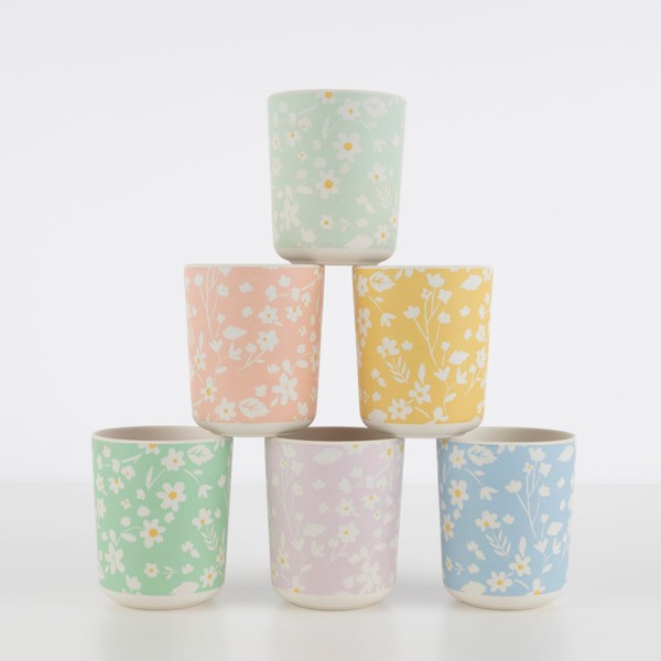 Meri Meri Floral Reusable Bamboo Cups (Pack of 6), 271219