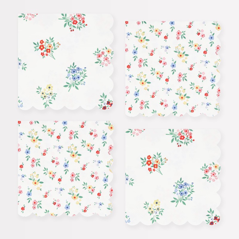 Meri Meri Garden Floral Napkins (Pack of 16), Thick & Absorbent 3-Ply Paper, Floral Paper Napkins, Scalloped Edge, Disposable