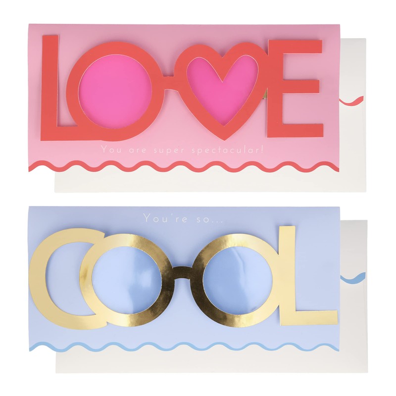 Meri Meri Kids Valentine Cards, Wearable Glasses (Pack of 24), Classroom Valentine's Day Greeting Cards, 12 Cool Print Glasses, 12 Love Print Glasses, For Ages 3+