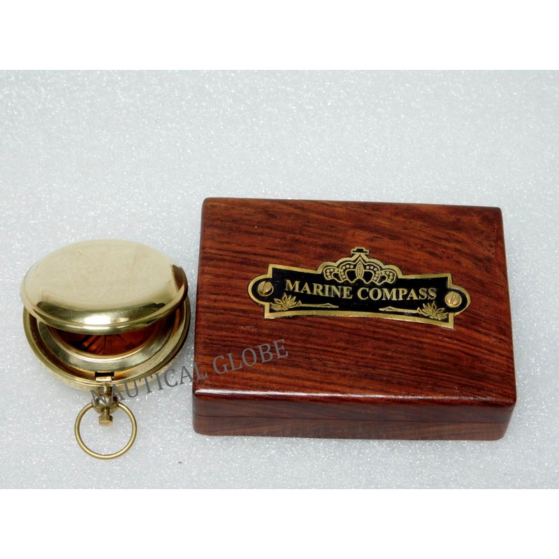 Meridian Nauticals Brass Compass Hand Made Push Button Compass Directional Pocket Compass Fully Working Compass with Rosewood Box