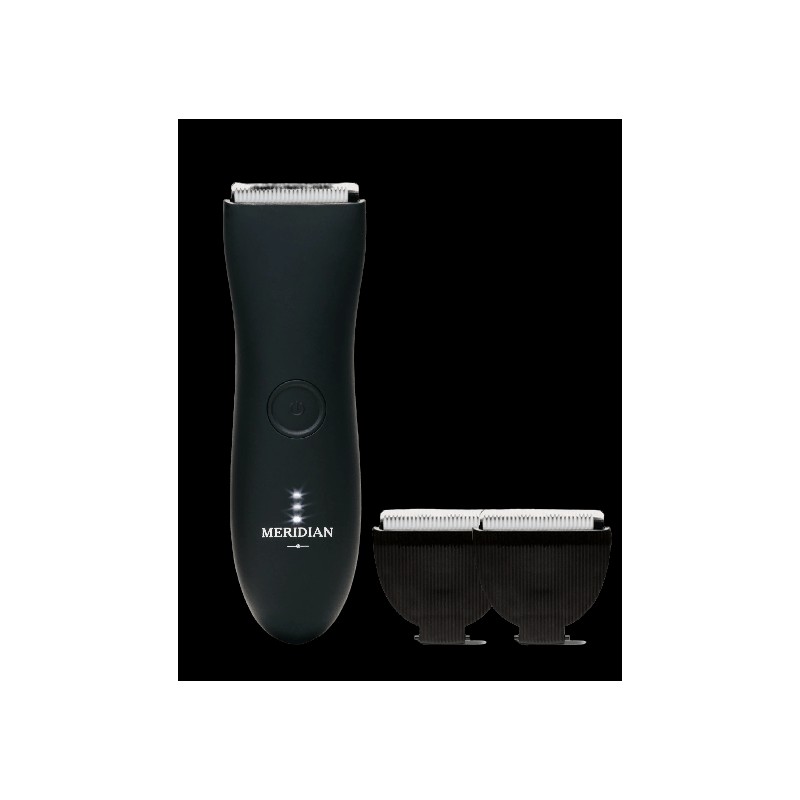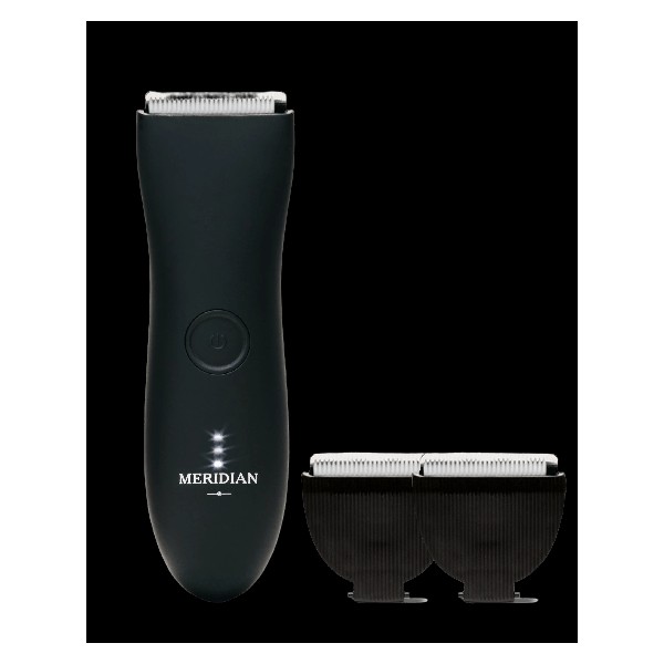 The Meridian Trimmer Bundle Onyx is perfect for those who want a waterproof trimmer that can handle coarse and curly hair without tugs and pulls, along with replacement blades that maintain precise sharpness for 3 months and are easy to attach, detach, and clean.