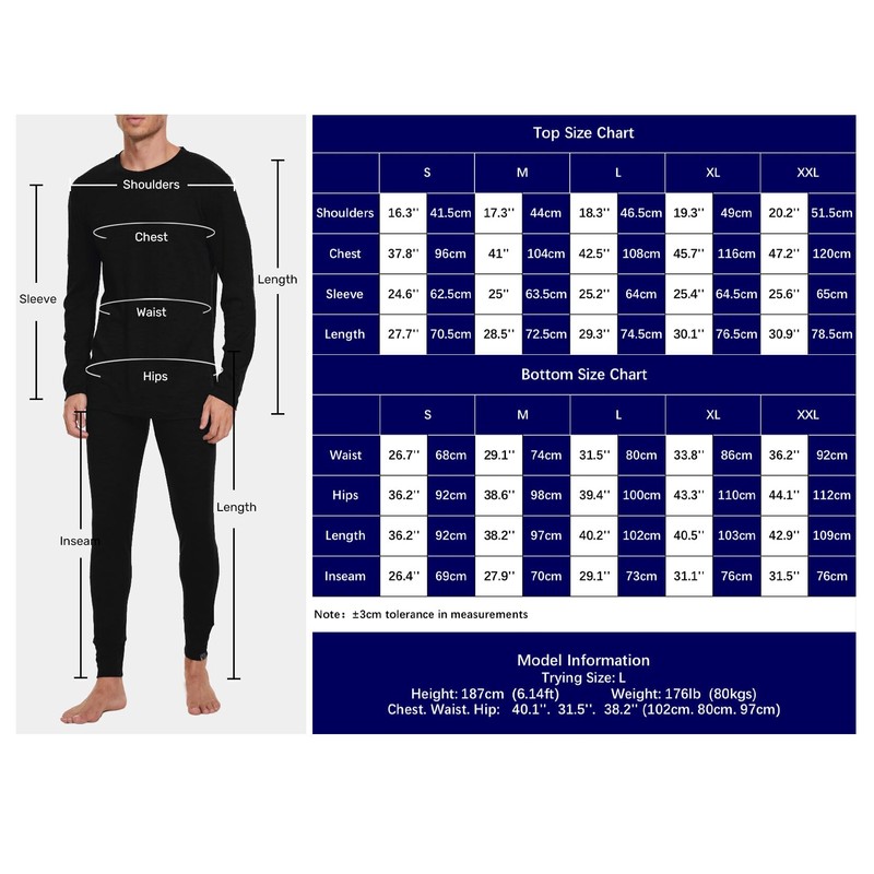 - EASY CARE--Machine-washable, this merino wool base layer top mens and long johns remains soft and comfortable with no shrinking, losing shape, fading or color-bleeding after wash under 40℃ water.