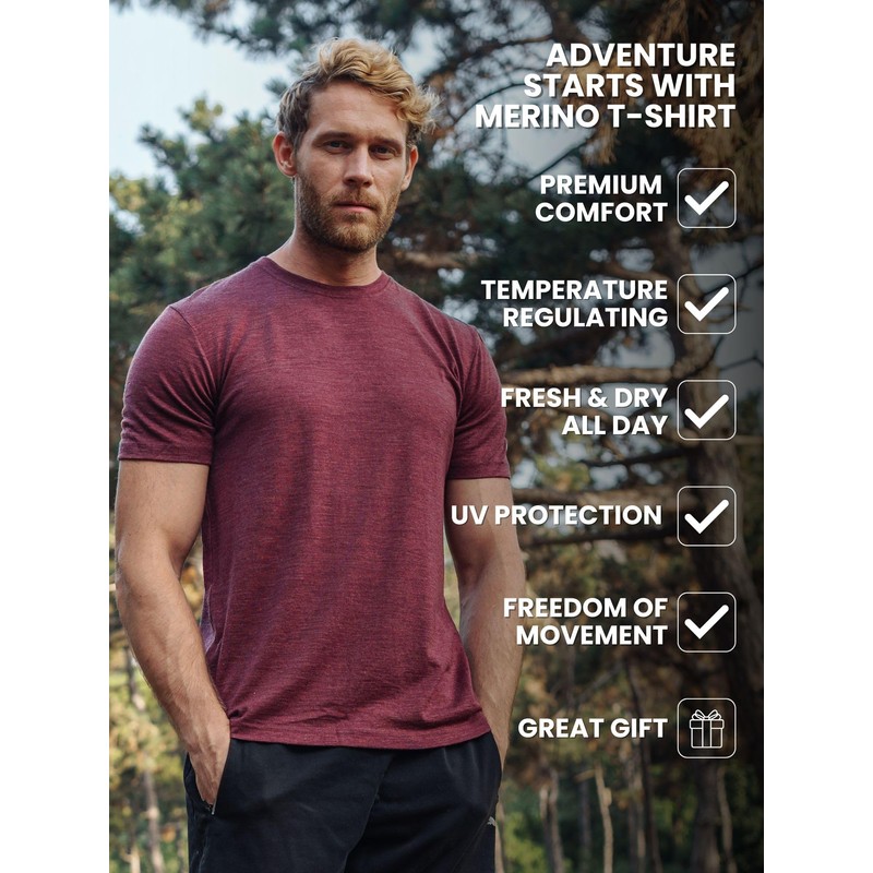 - Lightweight & Breathable: Package includes Merino Wool T Shirts For Men Lightweight 165 g/m². Makes a Great Gift!