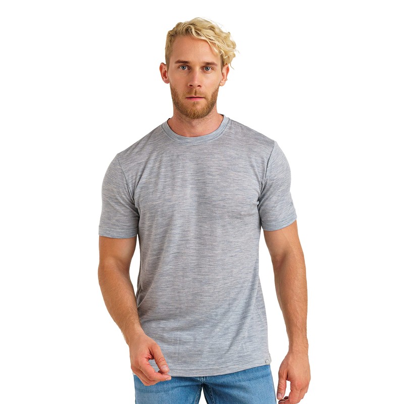 Merino.tech Merino Wool T-Shirt Mens - 100% Merino Wool Undershirt Lightweight Base Layer (Heathered Grey, Large)