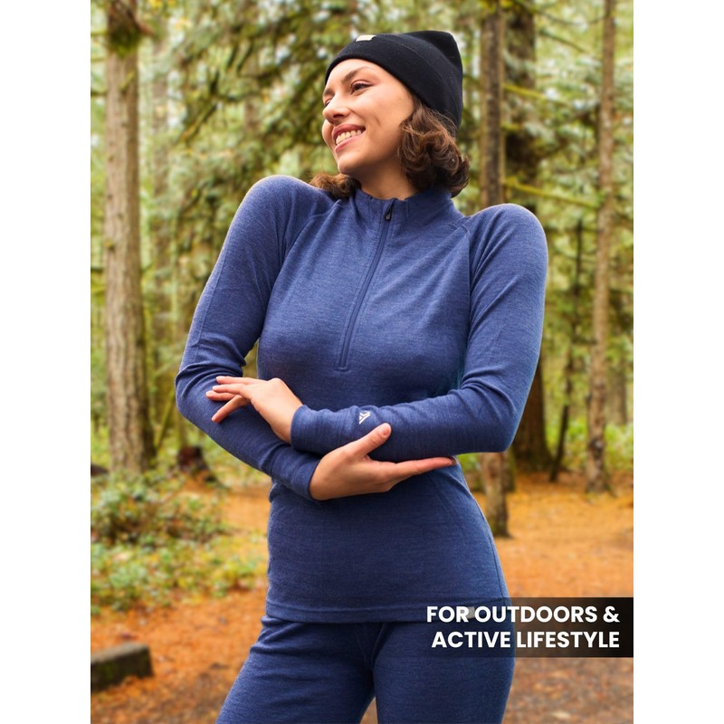 Merino Wool Base Layer Women - 100% Merino Half Zip Sweater Women Lite, Midweight, Heavyweight Thermal Shirts and Socks (Medium, 165 Denim Blue)