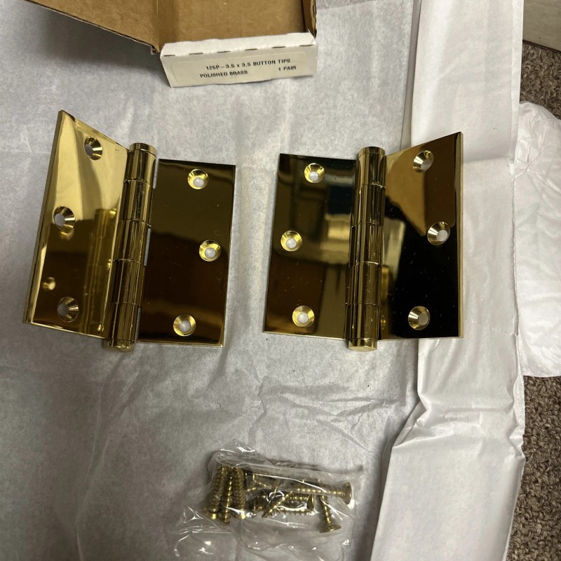 Merit Pair Merit 125P 3.5x3.5 Hinge Button Tip Polished Brass 1 pair Hinges