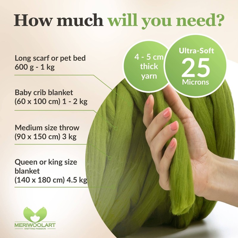 MeriWoolArt® 100% XXL Merino Wool Yarn, 4 - 5 cm Thick Wool Yarn, Felting Wool Dry Felting, Wet Felting, DIY Wool Yarn Blanket, Baby Wool, Arm Knitting Blanket Yarn, Lime, 100 g