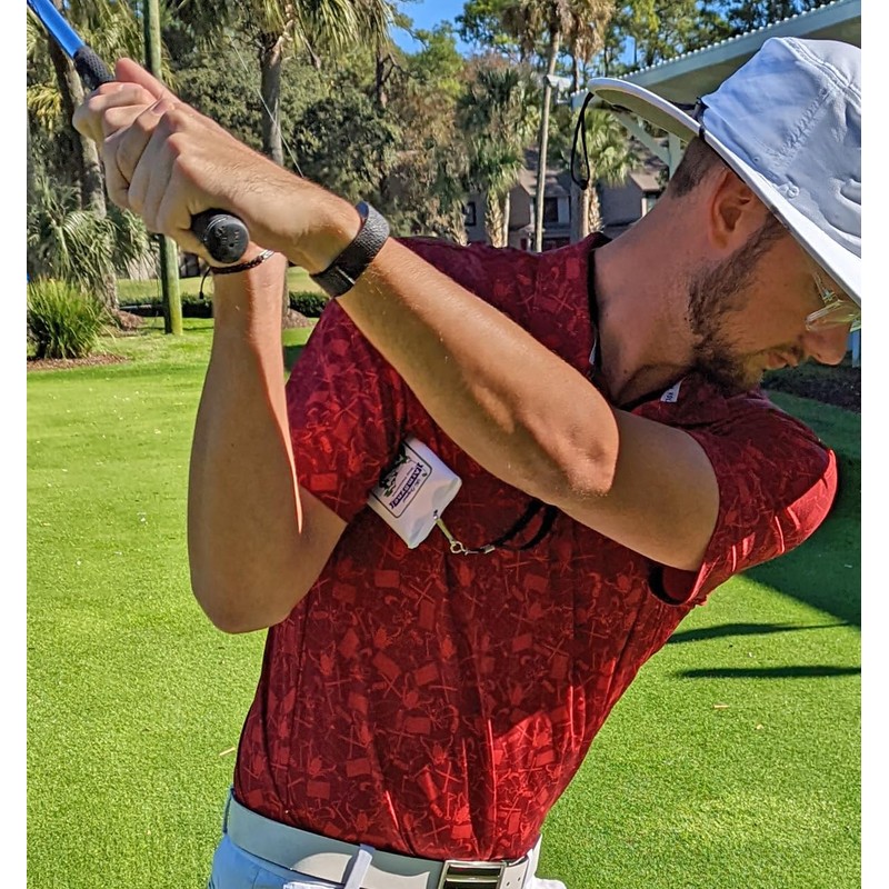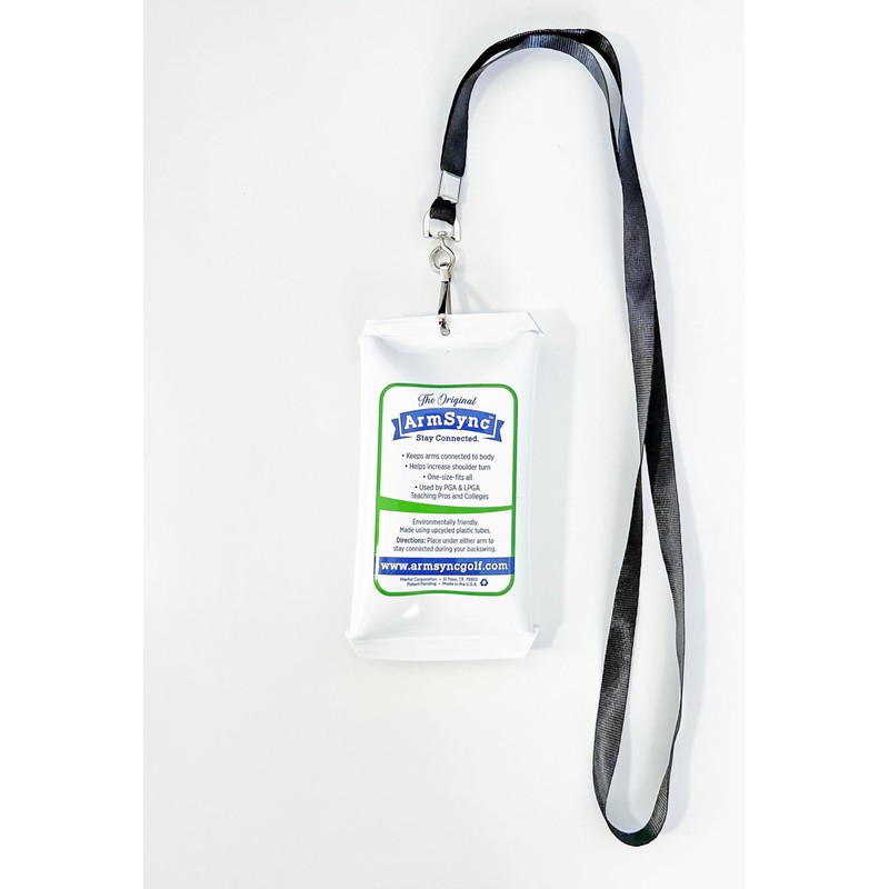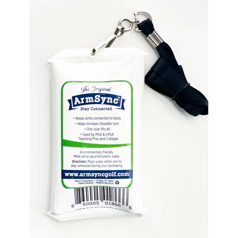 The Original ArmSync is a versatile golf training tool designed to help golfers improve their swing mechanics. This innovative device keeps your arms connected to your body and increases shoulder turn during your backswing, promoting a smooth and consistent motion. Its one-size-fits-all design makes it suitable for players of all levels, from beginners to professionals. Endorsed by PGA and LPGA teaching pros and colleges, the ArmSync is crafted from recycled plastic tubes, making it an environmentally conscious choice. Simply place it under either arm and let it guide you through a connected backswing. With the ArmSync, you'll stay connected and take your game to new heights.