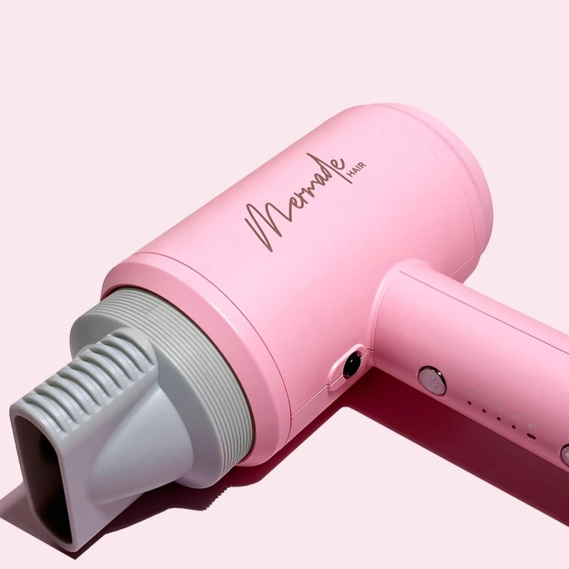 Mermade Hair Dryer - Blow Dryer, Hairdryer, Curly Hair Dryer, Professional Blowdryer for Fast Drying, Styling, Blowout, Compact & Portable, Works on All Hair Types - Pink (Pack of 1)
