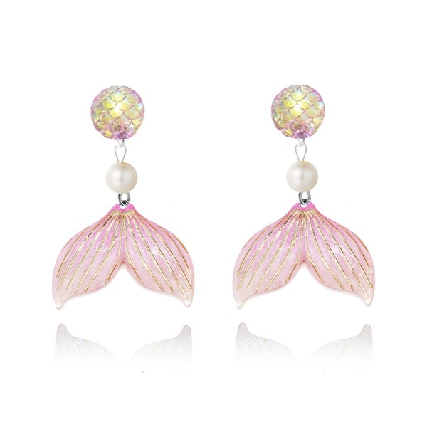 Mermaid Earrings for Women Mermaid Scales Clip on Earrings Pearl Fishtail Dangle Drop Earrings for Women Beach Jewelry (Pink)