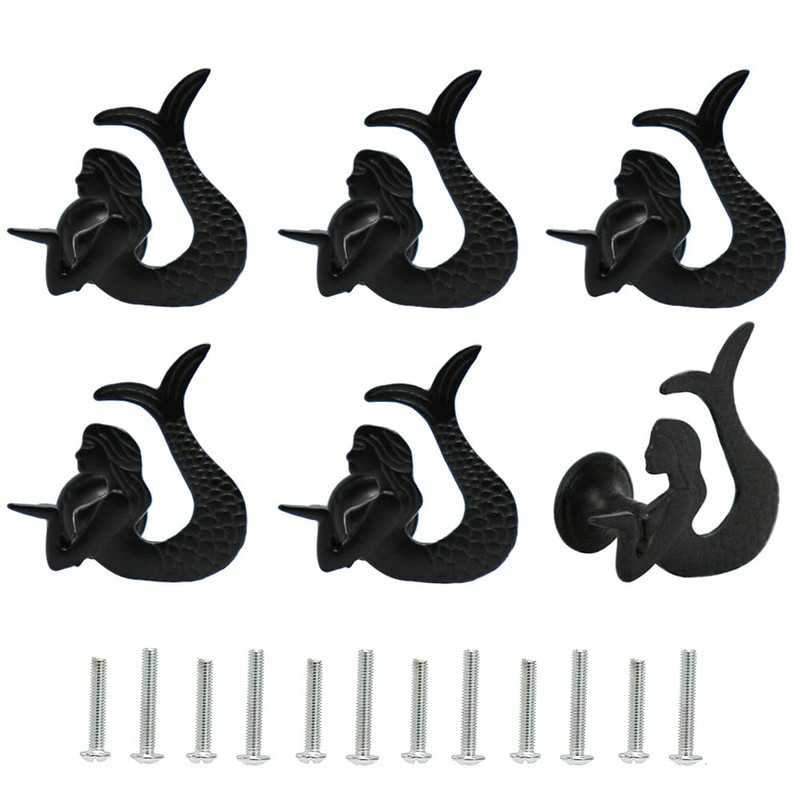 Mermaid Giraffe Cabinet Knobs, 6Pcs Ocean Theme Black Mermaid Cabinet Drawer Dresser Closet Cupboard Pulls Wardrobe Hardware (Mermaid Knobs)