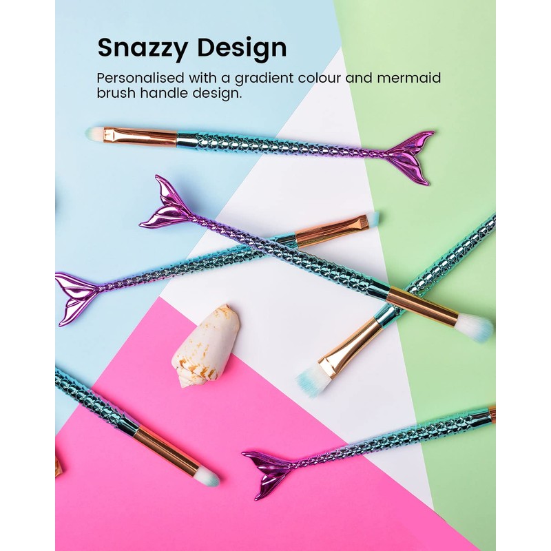 - Multifunctional: The mermaid make-up brush set covers a wide range of application needs such as foundation, contouring of the forehead and cheekbones, concealer, eye shadow, shaped eyebrows and blusher. With this eye brush, you can create beautiful eye make-up such as smoky eye.