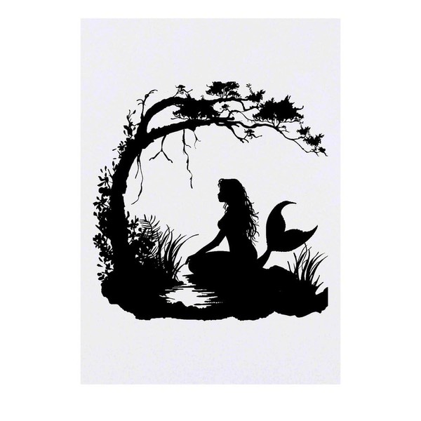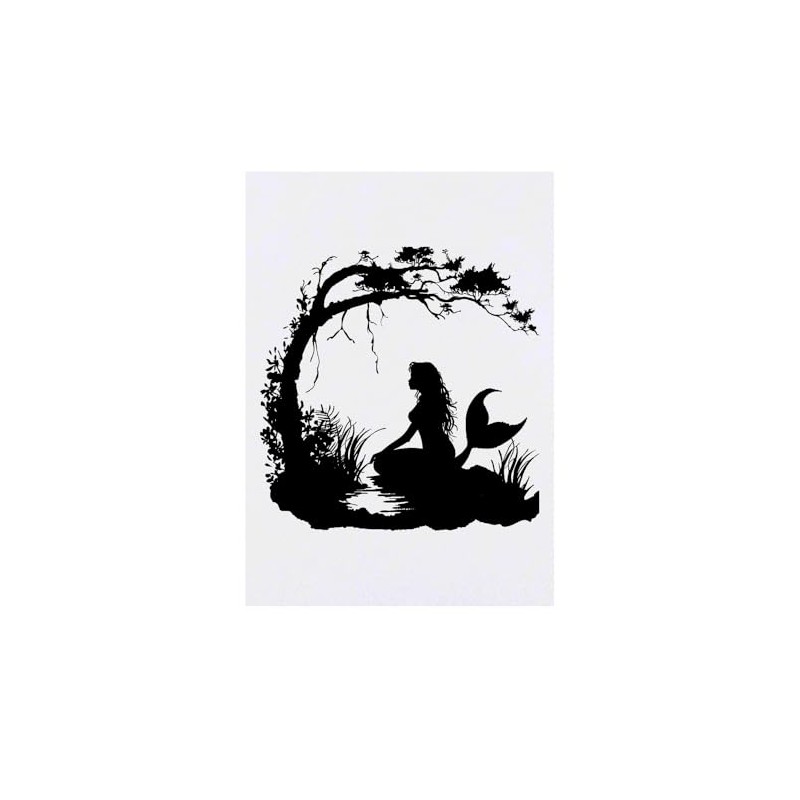 'Mermaid Silhouette with Tree' Temporary Tattoo - Water Resistant, Skin-Safe,...