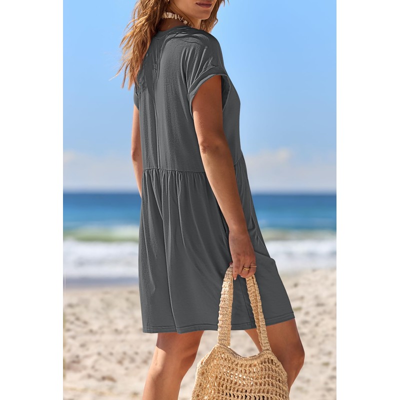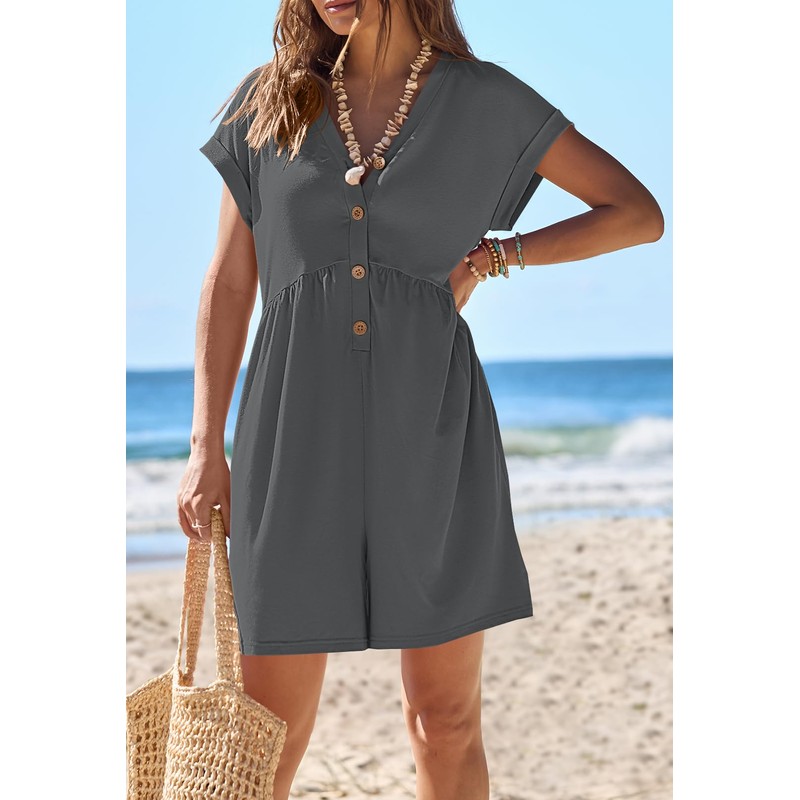 MEROKEETY Women's Summer Cap Sleeve Jumpsuits 2025 Casual V Neck Button Short Romper with Pockets, Charcoal, XX-Large