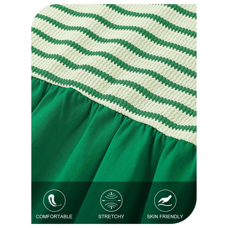 • Features: Summer dress for women features knitted striped tank top, sleeveless, crew neck, solid color patchwork skirts, drop waist, a line, ruffle layered hem, 2 side pockets, casual and relaxed fit, 2025 trendy dresses for women