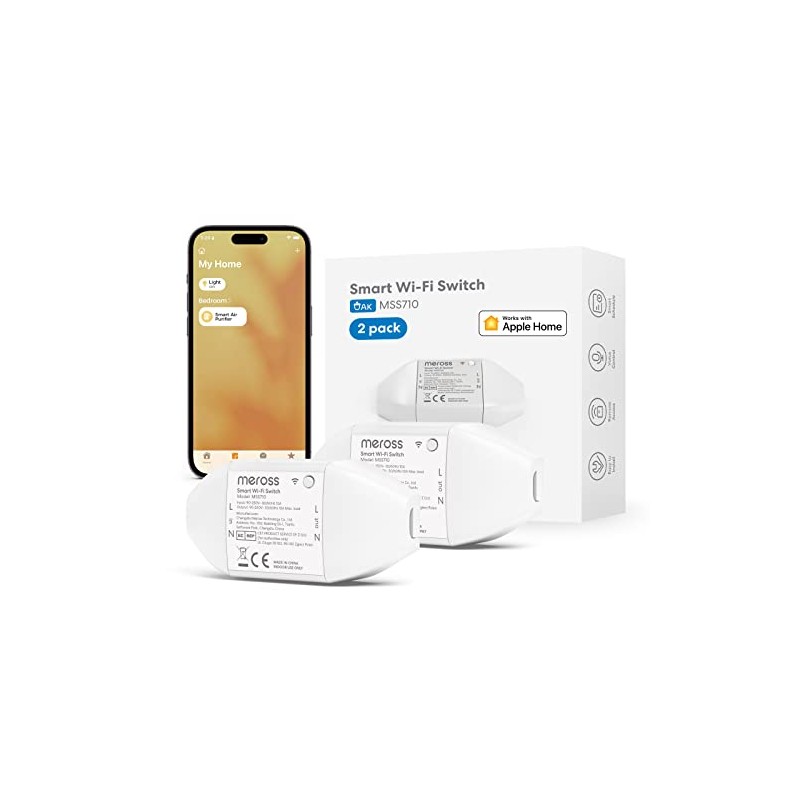 Meross WiFi Smart Switch Works with Apple HomeKit, DIY Smart Switch Module Remote and Voice Control Compatible with Alexa, Google Home, SmartThings, DIY Smart Switch for Electrical Appliances 2 Pack