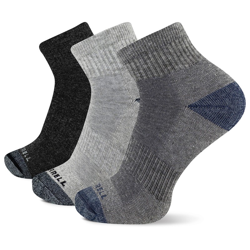 Merrell Men's 3 Pack Performance Quarter Socks, Charcoal/Black Assorted, M/L