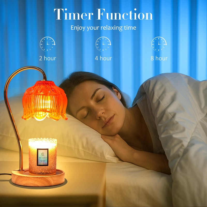 - 【Smart Timer Function】The flower candle warmer lamp with Timer features three auto-shut-off options (2H/4H/8H), It maintains continuous scent diffusion throughout your sleep or daily activities, allowing you to enjoy uninterrupted fragrance without worrying about forgetting to "extinguish" the candle.