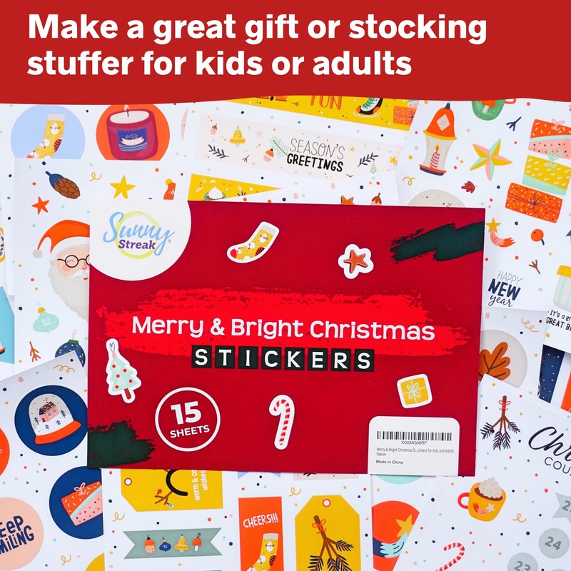 Merry & Bright Christmas Stickers - 14 Sheets of Seasonal Winter and Holiday Planner Stickers for Journaling, Scrapbooking, Greeting Cards, Crafts, Gift Wrap Aesthetic Stickers for Kids and Adults