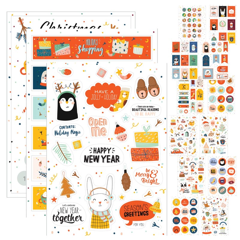 - Value set of 15 Sheets (each sheet 5.7" x 8.25") with 250+ holiday stickers, scrapbooking stickers