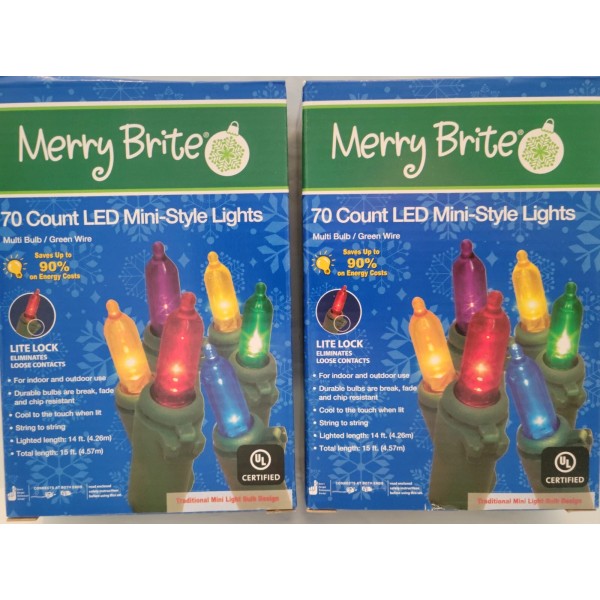 Merry Brite Lot of 2 Merry Brite 70 Ct Holiday LED Multicolor String Lights Green Wire