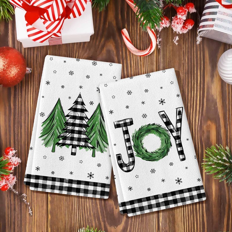 Merry Christmas Hand Towels Set of 2,Xmas Tree Joy Snowflake Checkered Bath Hand Towels for Bathroom Decorative Winter Soft Absorbent Face Towels for Bathroom Home Hotel Gym Spa Yoga Kitchen 18"x26"
