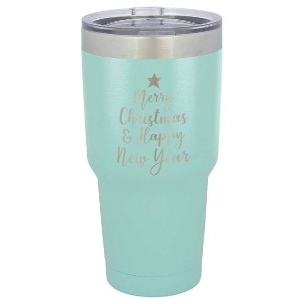 MERRY CHRISTMAS & HAPPY NEW YEAR Engraved Teal 30 oz Tumbler With Straw and Slide Top Lid | Stainless Steel Travel Mug | Compare To Yeti Rambler Idea