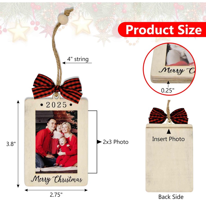 - Elegant Design: Features vintage wooden photo framed ornament with red plaid bow & jute hanger with 2025 & Merry Christmas engraving; perfect customizable xmas ornaments to insert your favorite picture for a warm personalized Christmas tree display