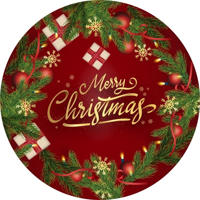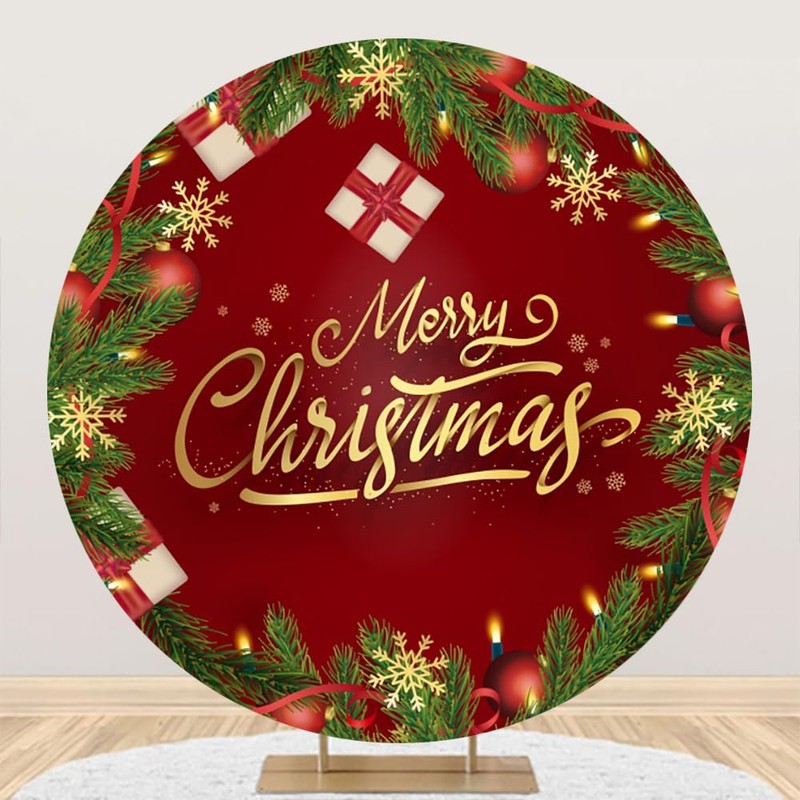 Merry Christmas Round Backdrop Cover for Photography - 7.2ft Pine Needles Snowflake Gift Golden Xmas Red Circle Round Backdrop Stand Cover Winte Xmas Party Decoration Background Studio Props
