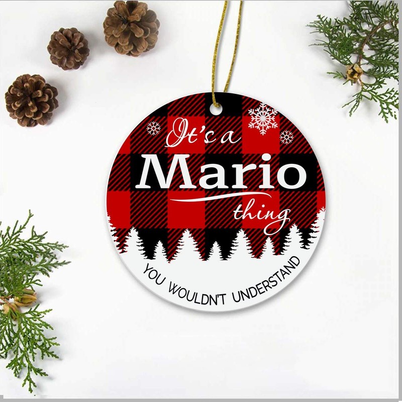 Merry Christmas Tree Ornament with Custom Name Mario Ornament - It's a Mario Thing You Wouldn't Understand - Rustic Decoration Gift Idea Holiday Ornament Plastic 3" Keepsake